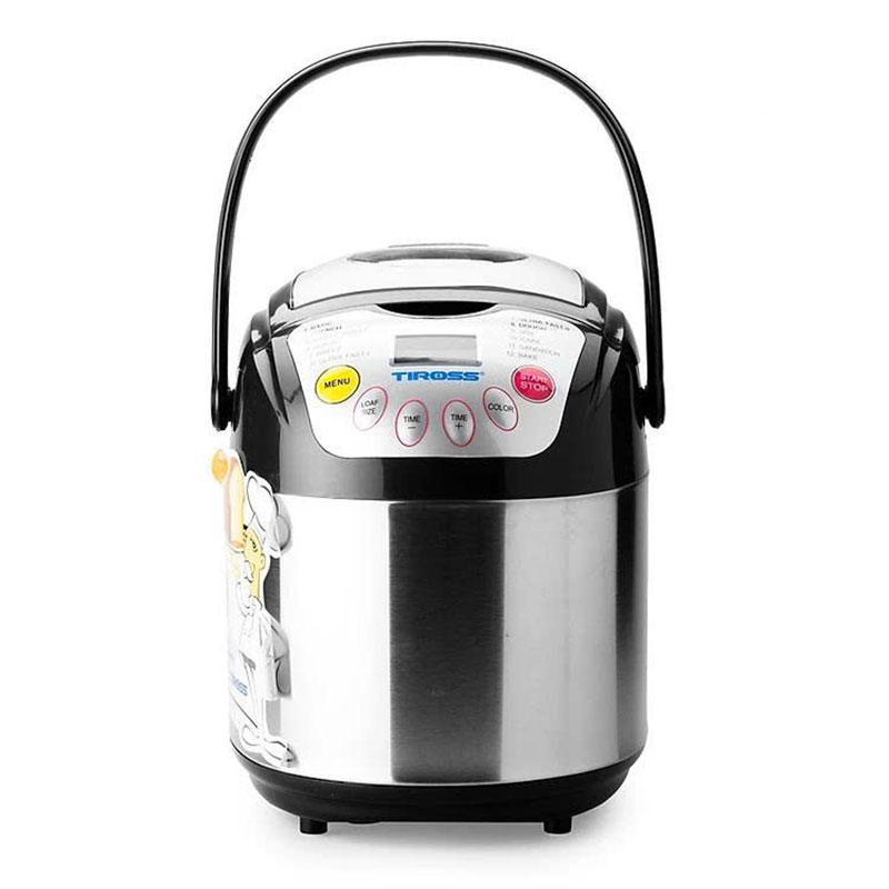 Máy Làm Bánh Mỳ Tiross TS821 gồm 12 chức năng làm bánh, 3 mức điều chỉnh màu bánh, chức năng hẹn giờ lên đến 13 tiếng và giữ ấm 60 phút sau khi bánh chín. Thân máy bằng inox siêu bền và mang lại vẻ sang trọng. Trong mỗi sản phẩm máy làm bánh Tiross TS821 đều đi kèm hướng dẫn sử dụng và công thức làm bánh đầy đủ. Bạn chỉ việc chuẩn bị nguyên liệu bột và phụ phẩm, pha chế theo từng công thức để có mẻ bánh khác nhau.Với máy làm bánh mỳ Tiross TS821 bạn sẽ nhanh chóng có những chiếc bánh mì nóng nổi để ăn kèm với mứt, thịt nguội, trứng chiên, xà lách… Như vậy không mất quá nhiều thời gian, bạn đã chuẩn bị xong bữa sáng ngon miệng và dinh dưỡng cho gia đình mình.